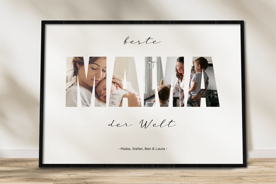 Wie personalisiere ich das Fotoposter "Mama Wort"?