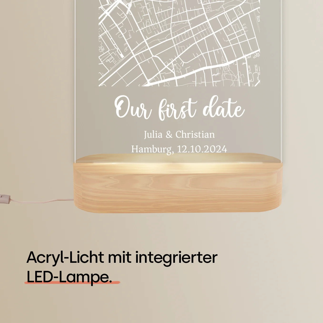 Personalisiertes Acryl-Licht mit Gravur