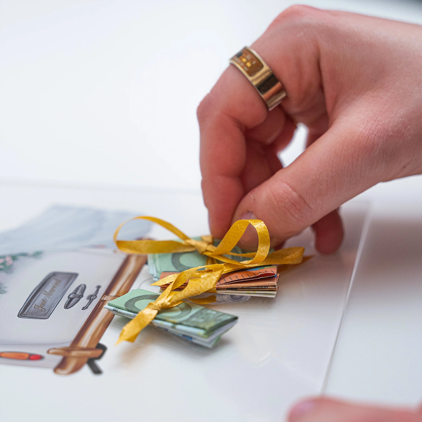 Wie befestige ich die Geldscheine am Acryl-Glas?