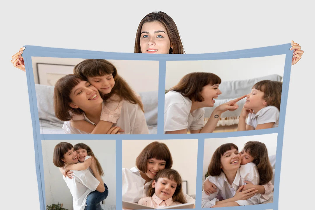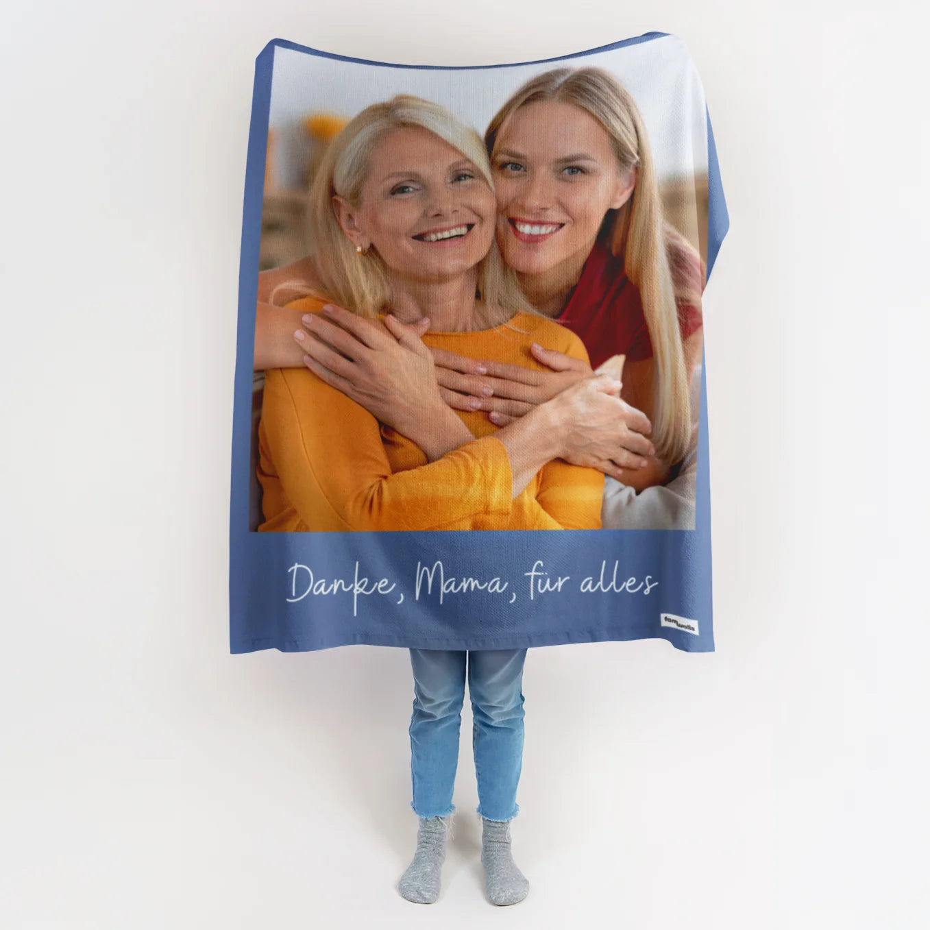 +Ja, du kannst einen individuellen Text eingeben, der zusammen mit den Fotos auf die Decke gedruckt wird.