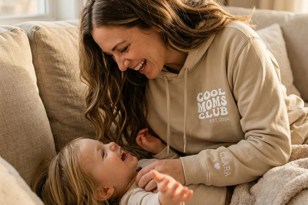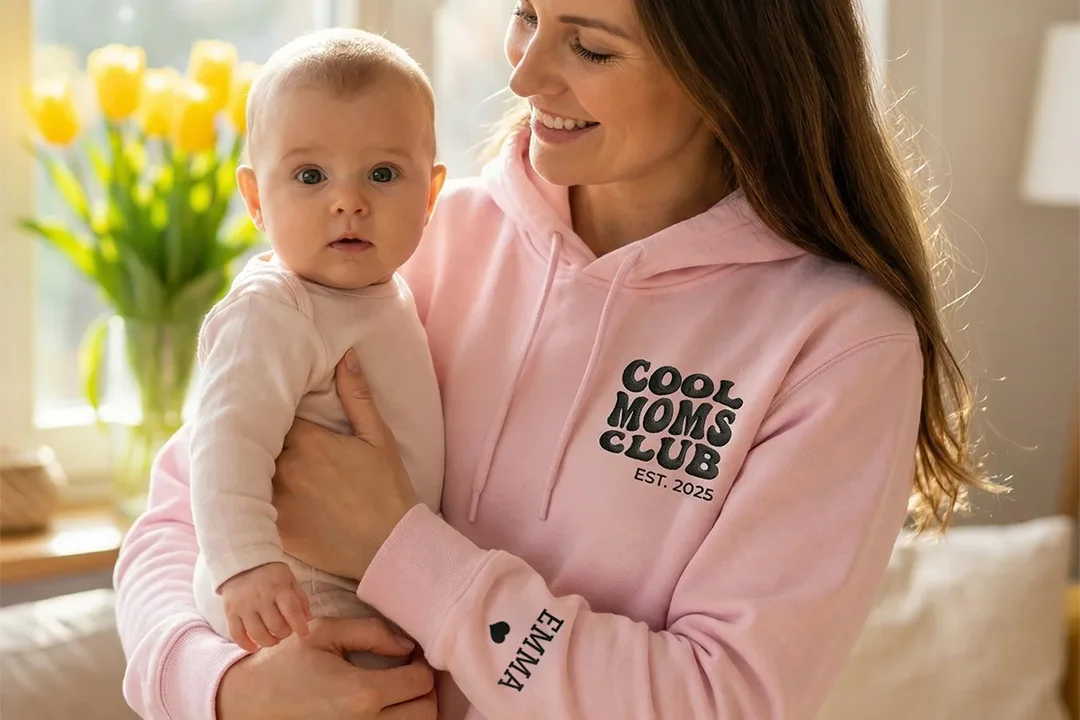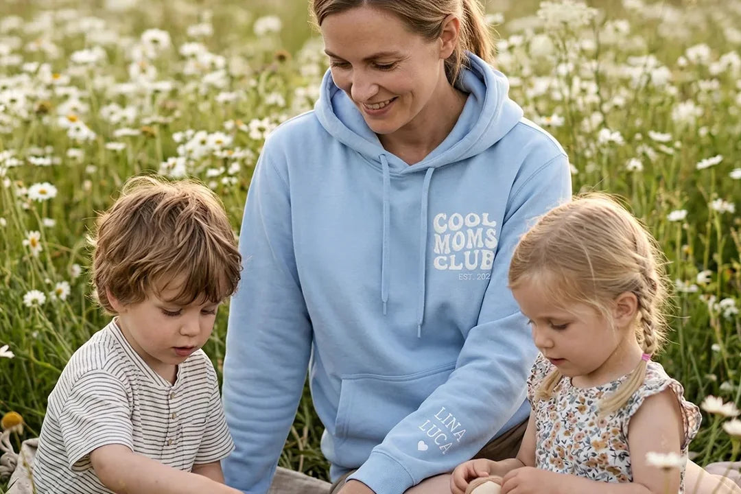 Wie wird der „Cool Moms Club“ Hoodie personalisiert?
