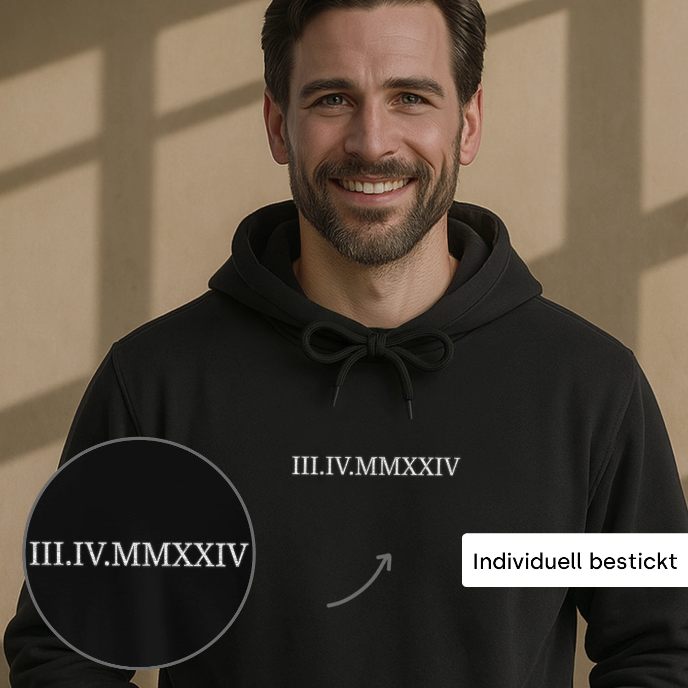 Personalisiertes Hoodie mit römischer Stickerei