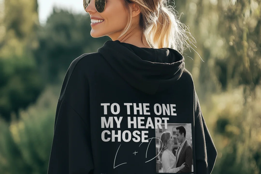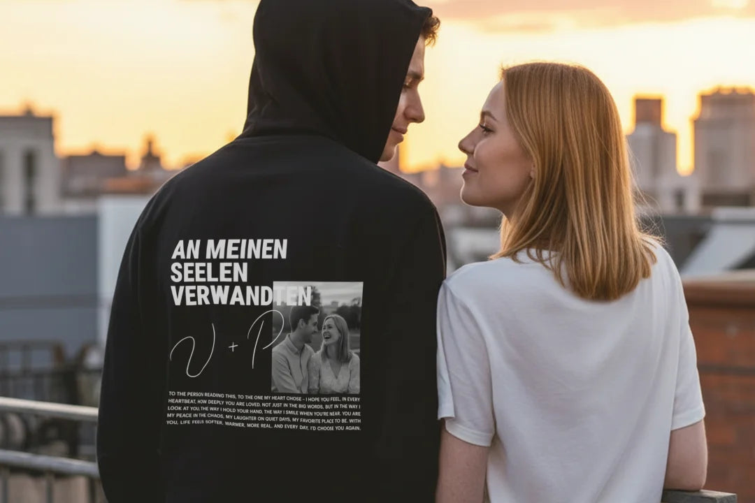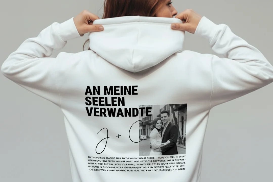 +Der Hoodie wird hochwertig bedruckt – mit eurem Foto, Initialen und einem individuellen Text deiner Wahl.