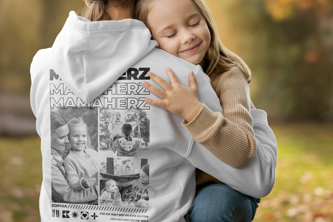 +Ja! Nach dem Hochladen der Fotos und Auswahl des Spruchs kannst du eine Vorschau generieren und dein Design vor dem Kauf überprüfen.