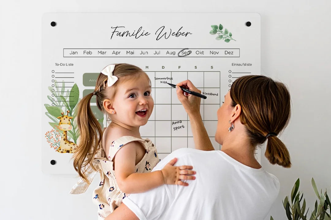 +Ja, die bedruckte Acryloberfläche ist mit abwischbaren Stiften beschreibbar und lässt sich einfach reinigen.