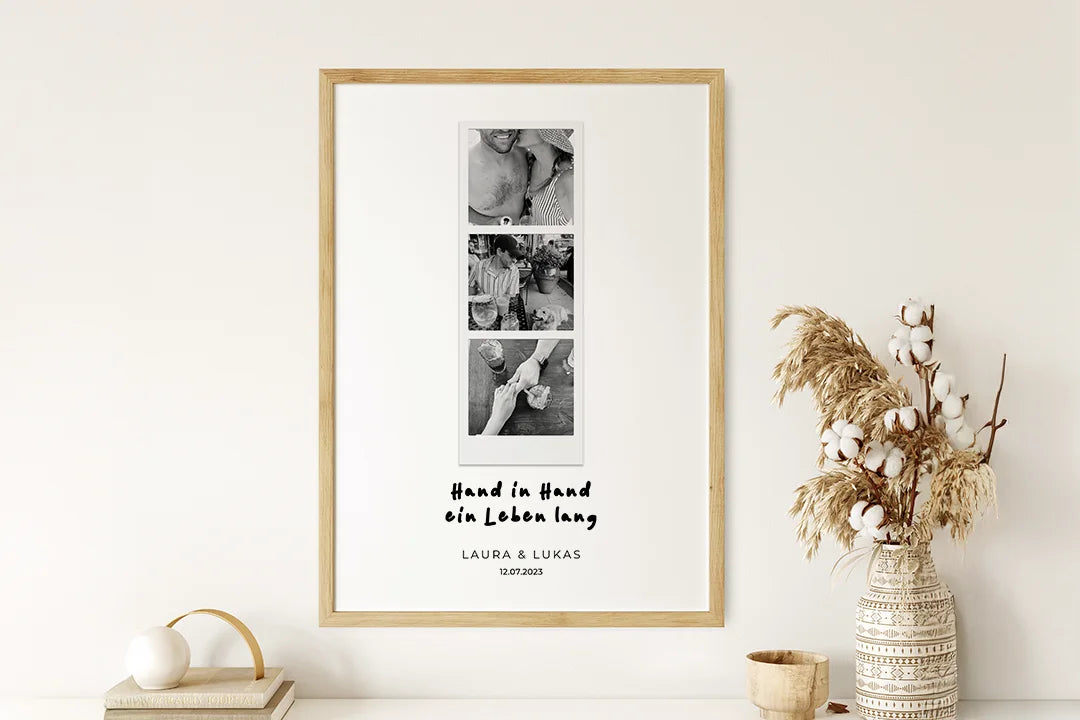 +Ja, du kannst zwischen verschiedenen Holzrahmen-Optionen wählen – Schwarz, Natur oder Weiß. Der Rahmen ist optional und gegen Aufpreis erhältlich.