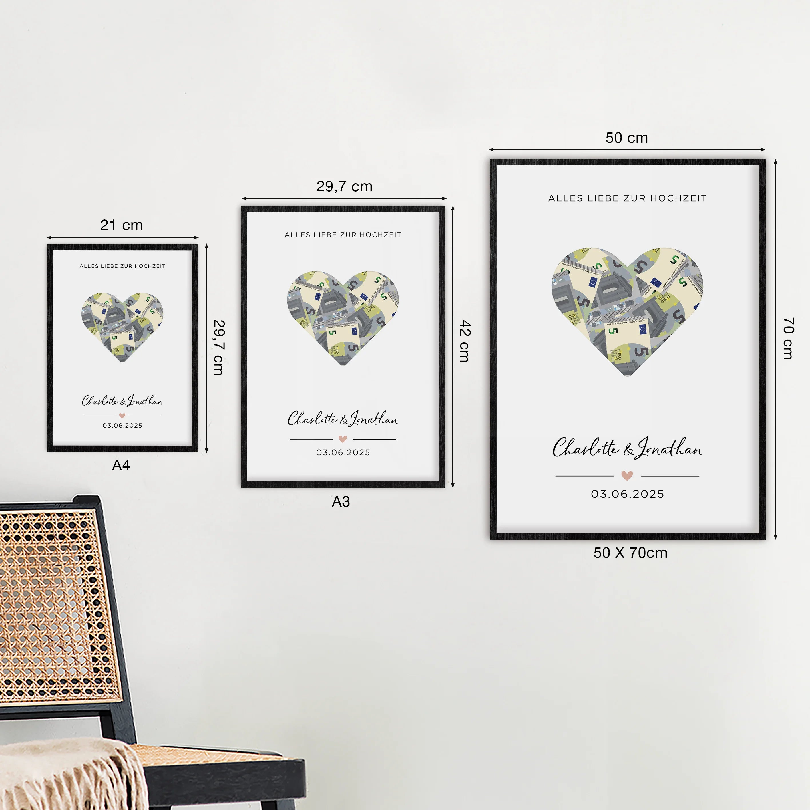 Was passiert wenn das Brautpaar die Scheine aus dem Poster entnimmt?