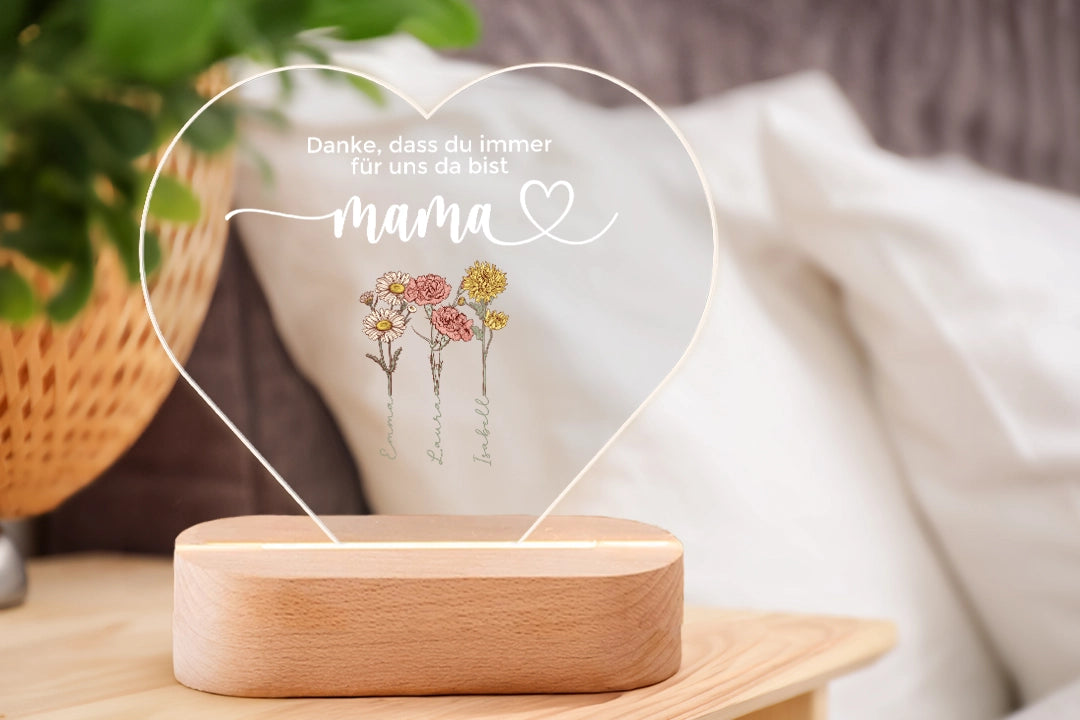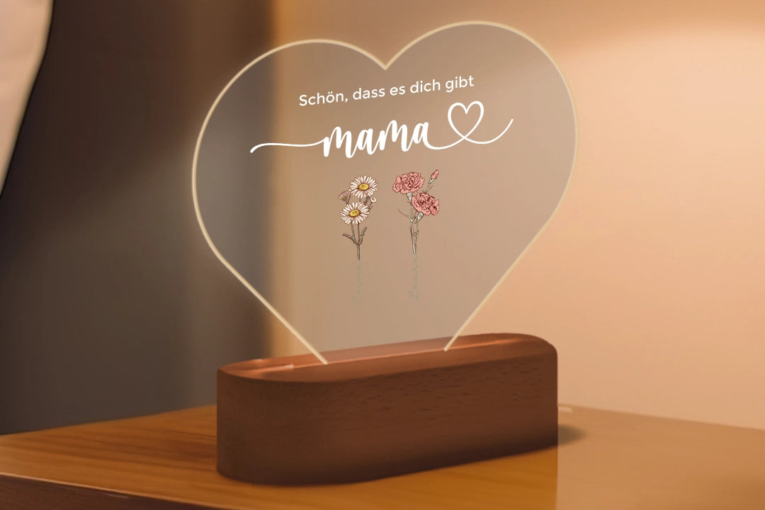 Personalisiertes Herz Acryl-Licht mit Blumen