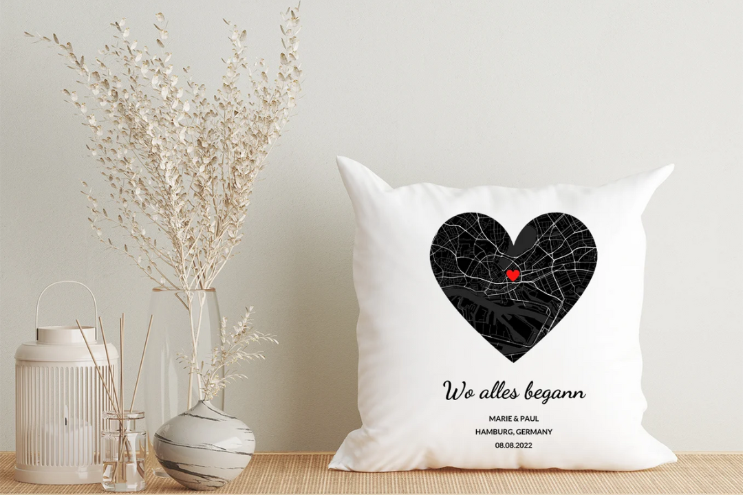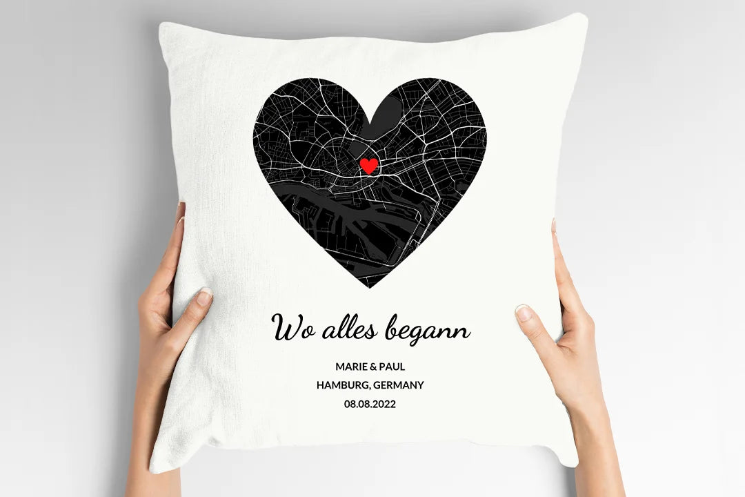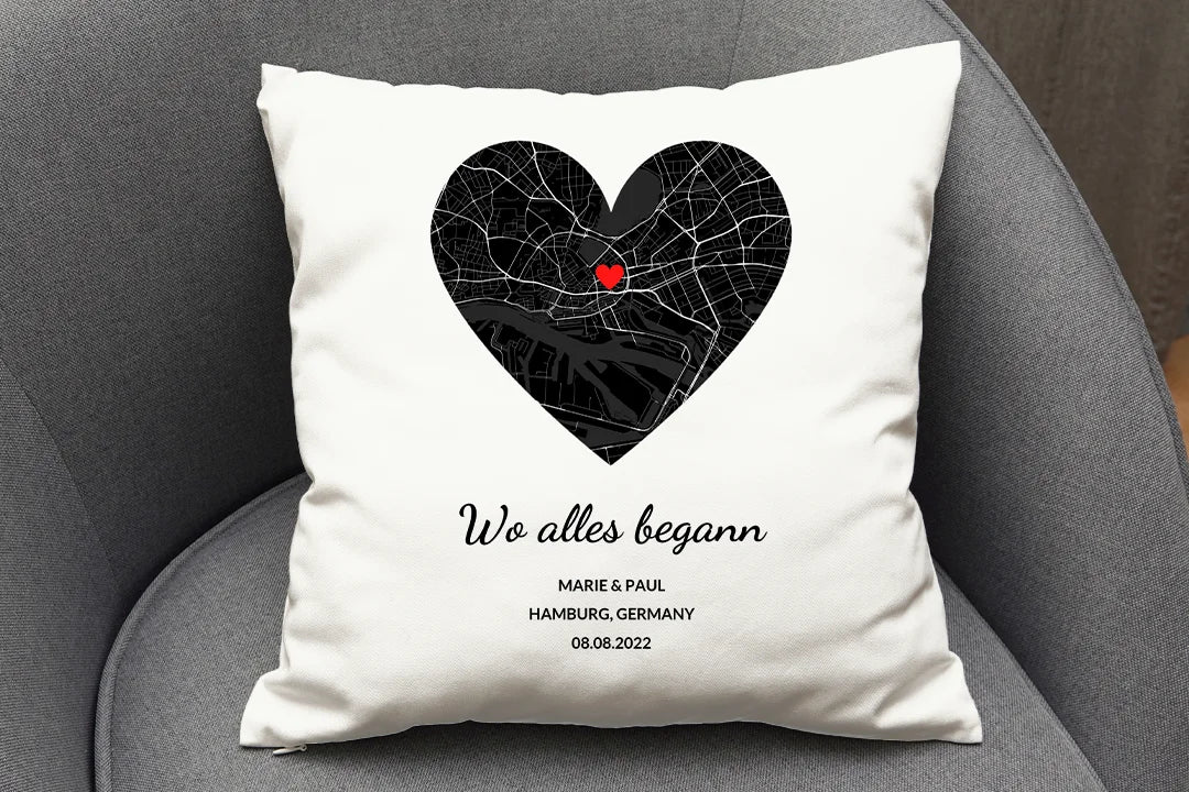 Personalisiertes Kissen "Herzkarte" – voller Erinnerungen
