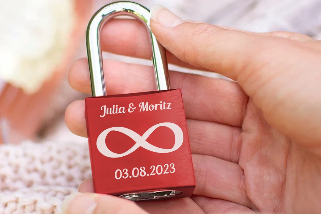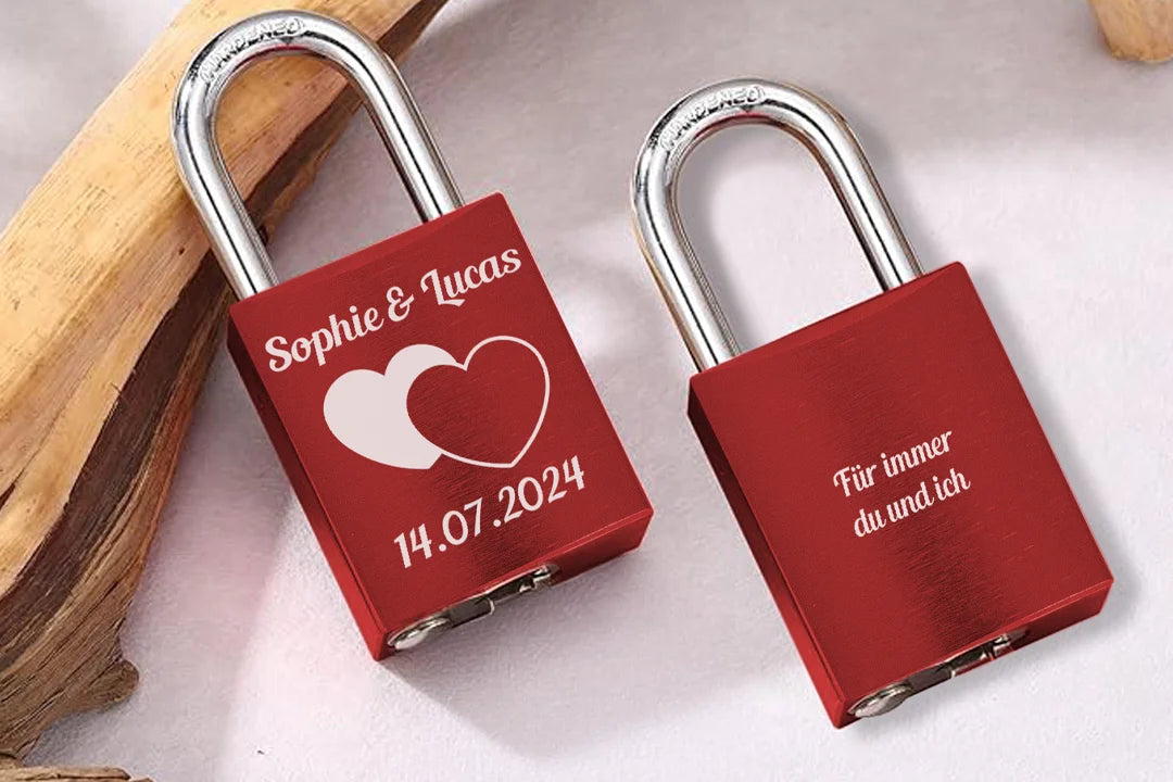 +Ja, du kannst aus vorgefertigten Texten wählen oder eine individuelle Botschaft angeben. So wird das Schloss noch persönlicher.