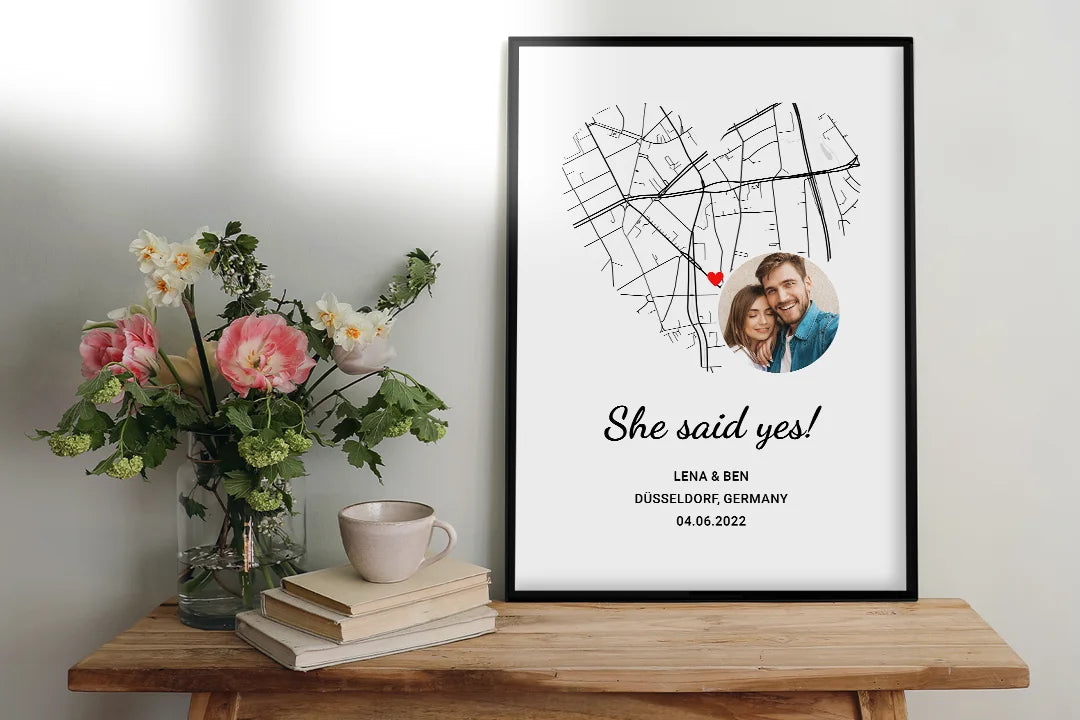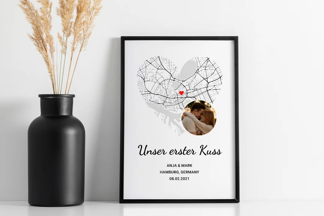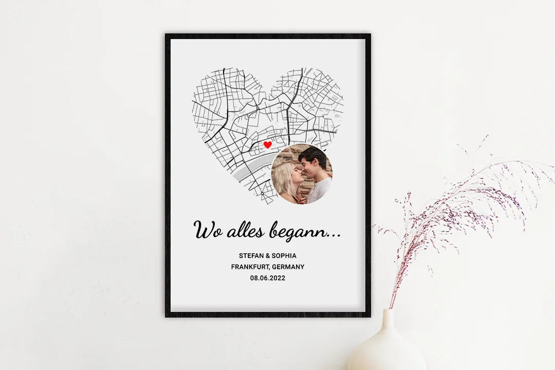 +Ja, der Spruch, die Namen und das Datum können individuell angepasst werden, um eure persönliche Geschichte widerzuspiegeln.