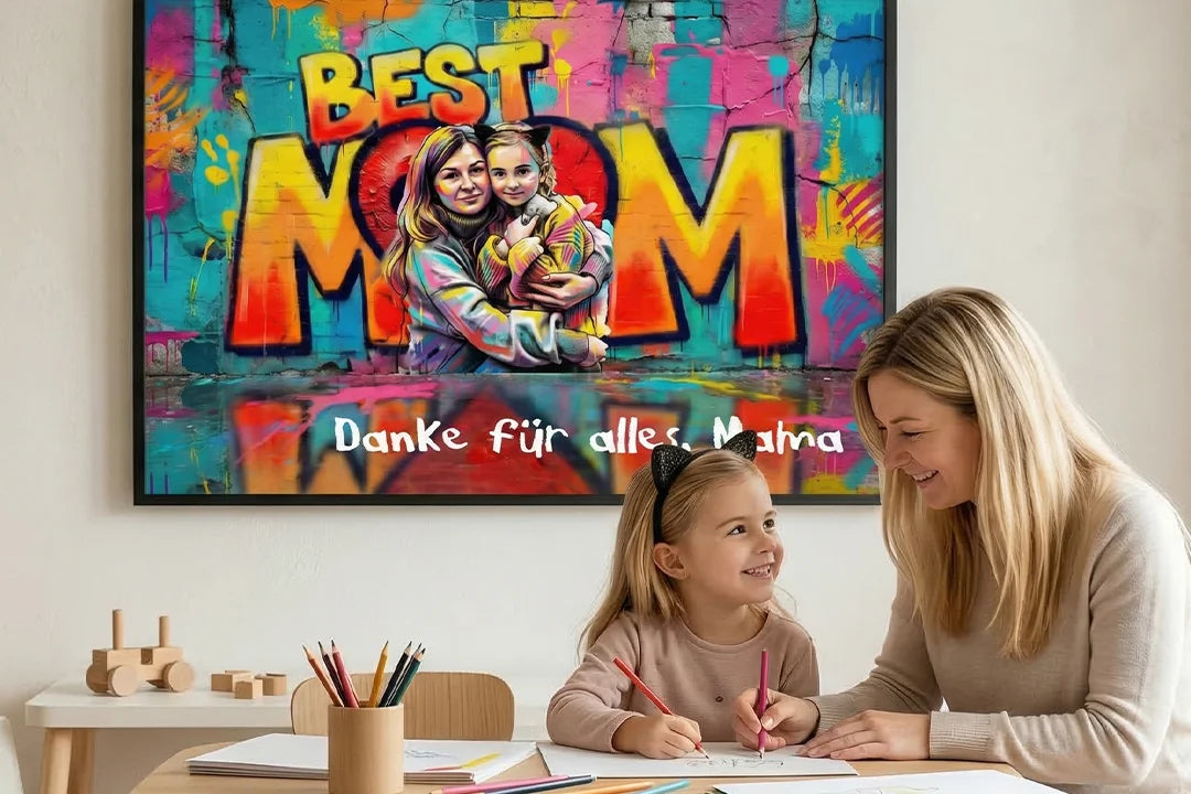 +Du kannst optional einen passenden Rahmen auswählen, sodass dein Poster direkt fertig zum Verschenken ist.