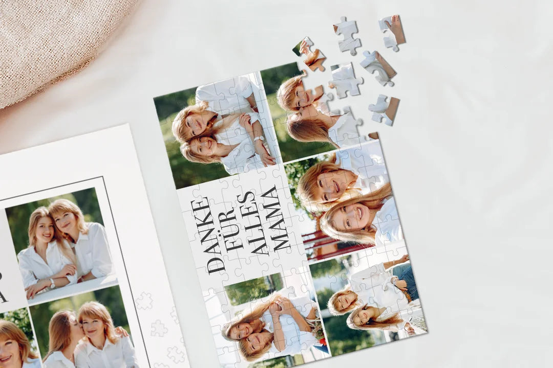 +Ja, die Puzzlebox kommt mit deinem Wunschtext – perfekt für eine persönliche Note beim Verschenken.