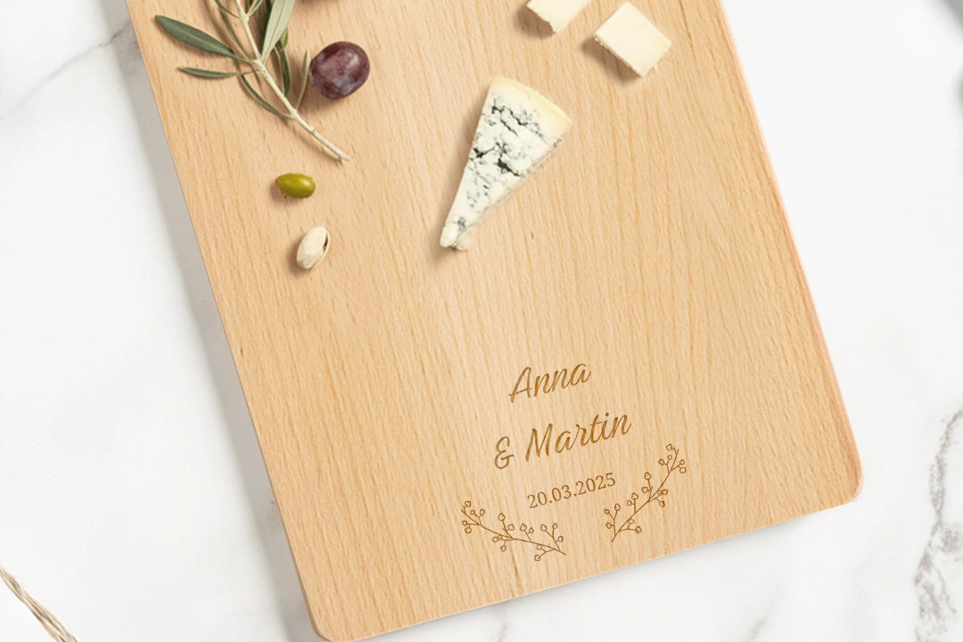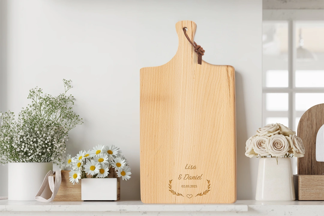 +Das Brett ist ca. 42 x 22 x 1,5 cm groß – ideal für die Küche oder als dekoratives Element.