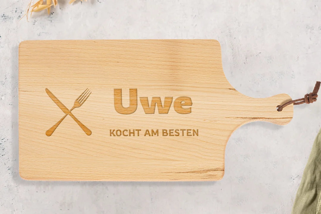+Absolut! Mit seinem schönen Holzgriff und der stilvollen Gravur ist es ideal zum Anrichten von Käse, Wurst oder Fingerfood.