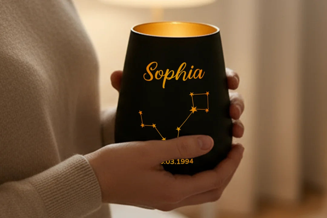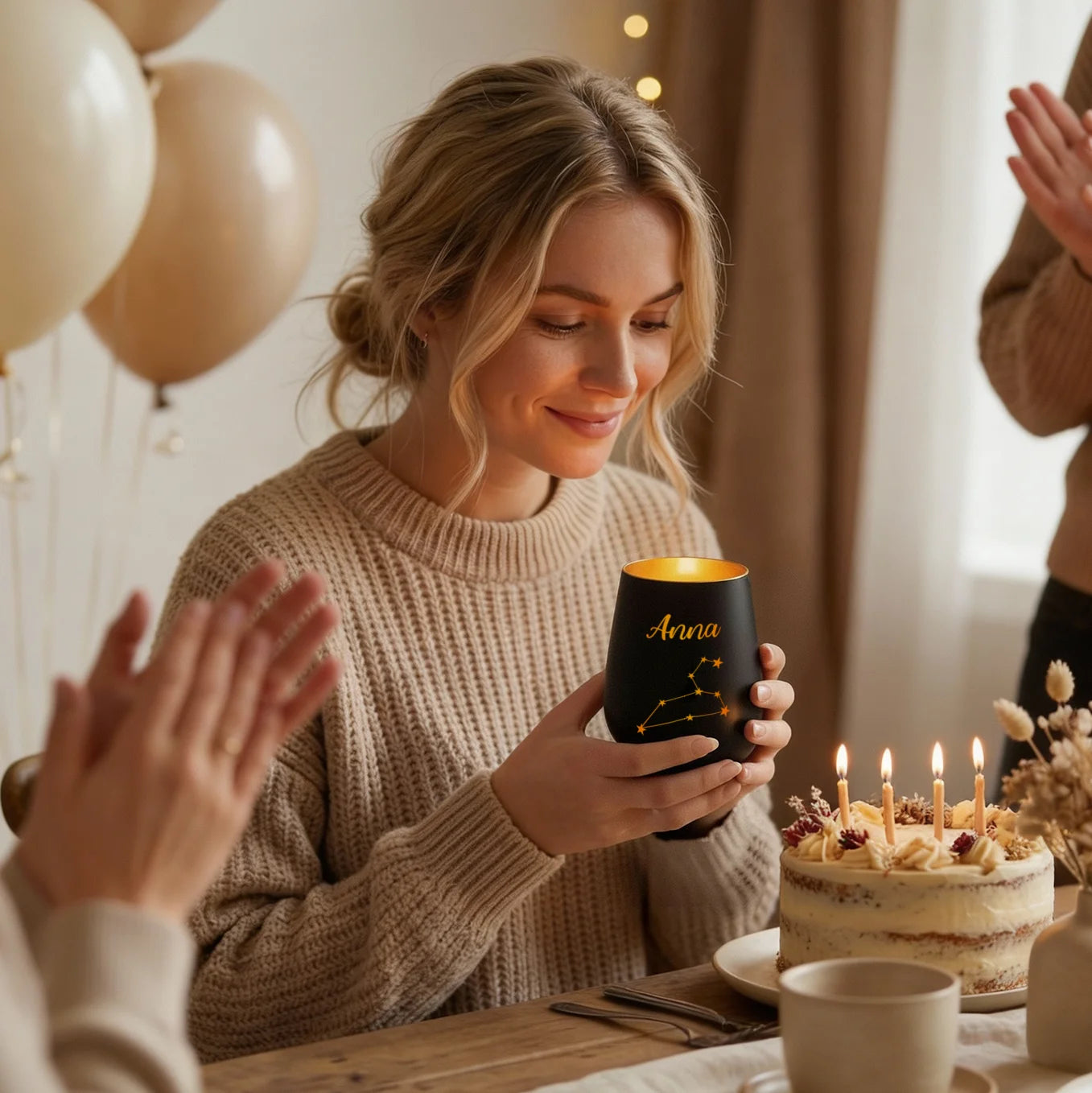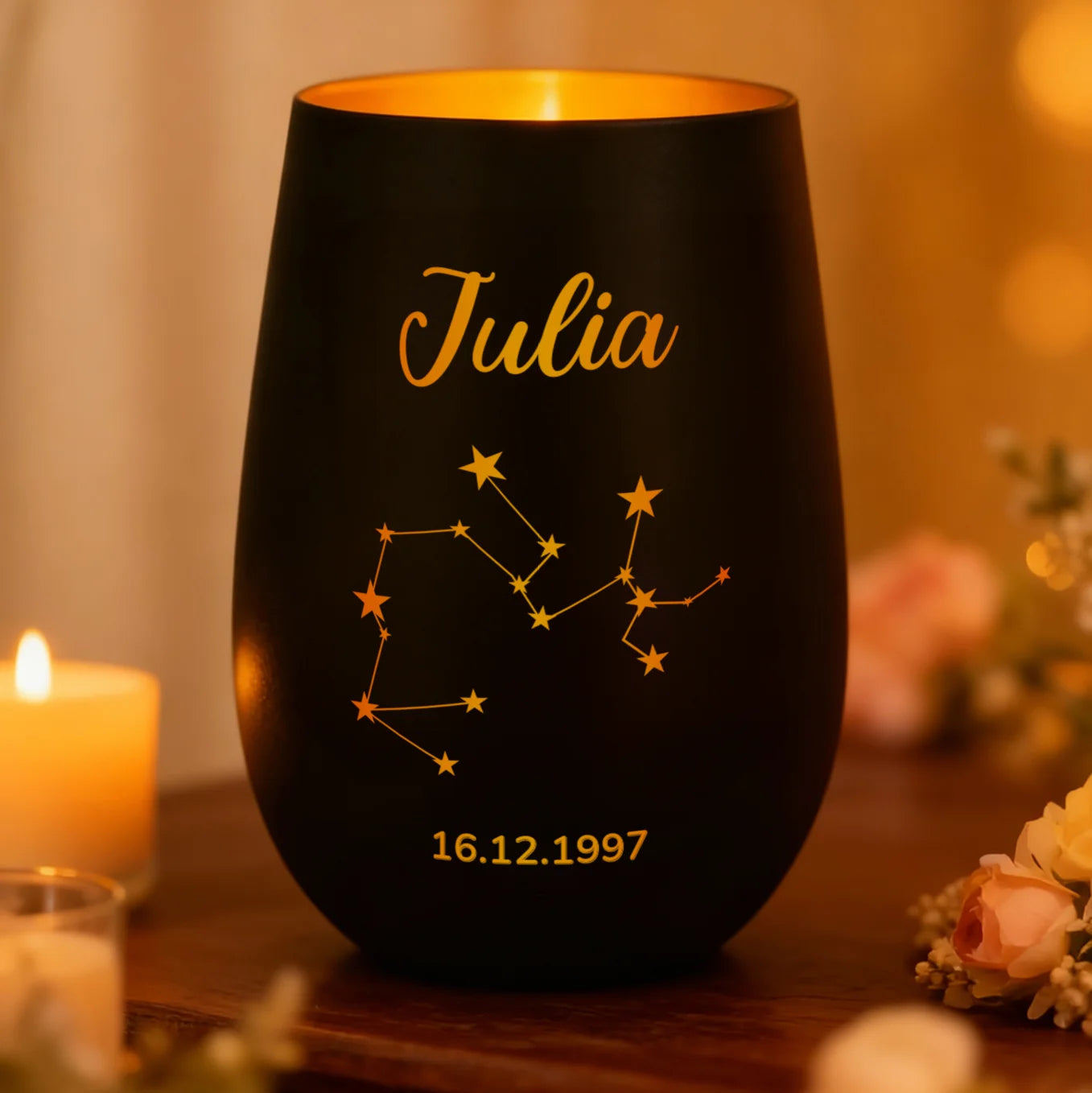 +Das Windlicht ist ca. 12 cm hoch und 8,5 cm breit – ideal für Teelichter oder kleine Kerzen.