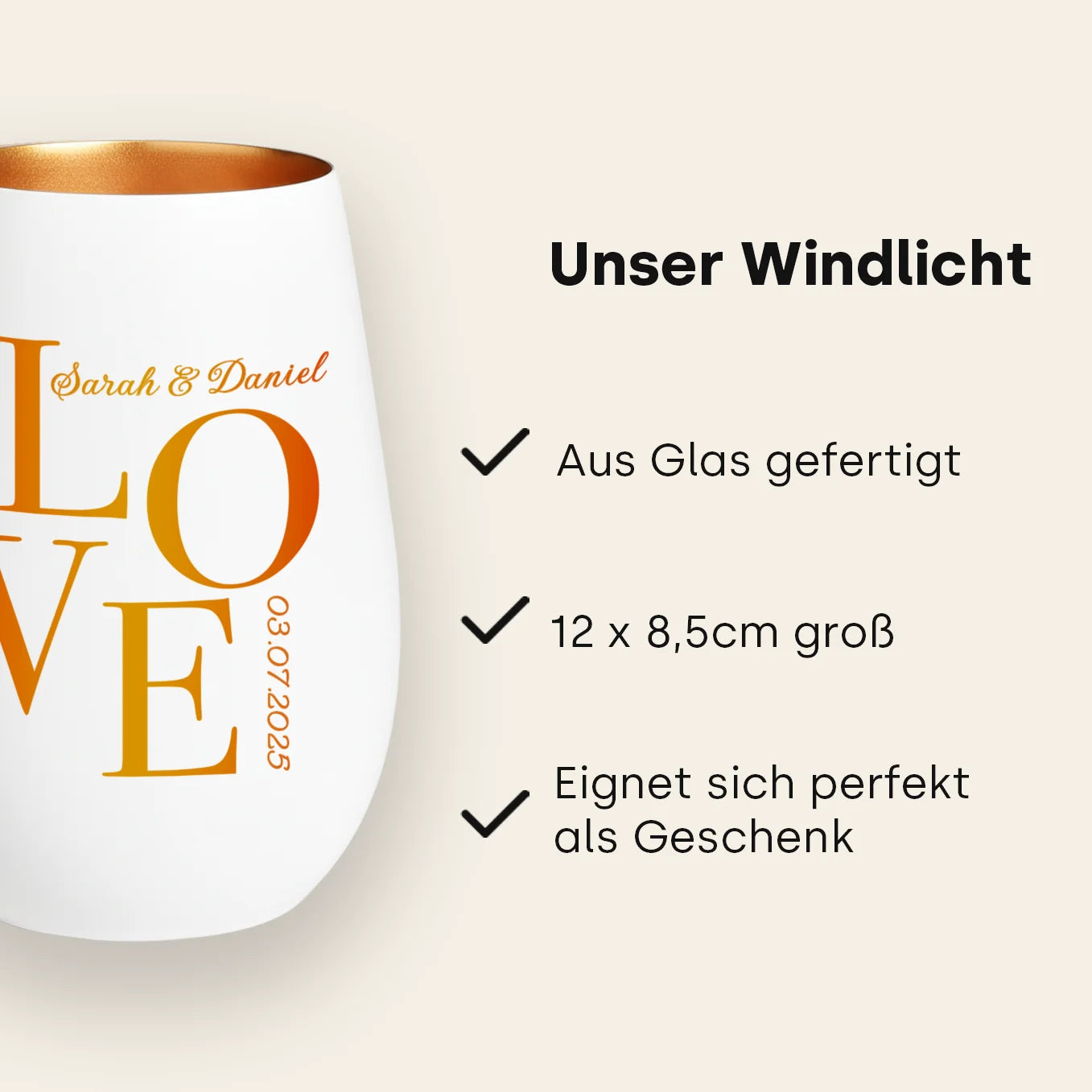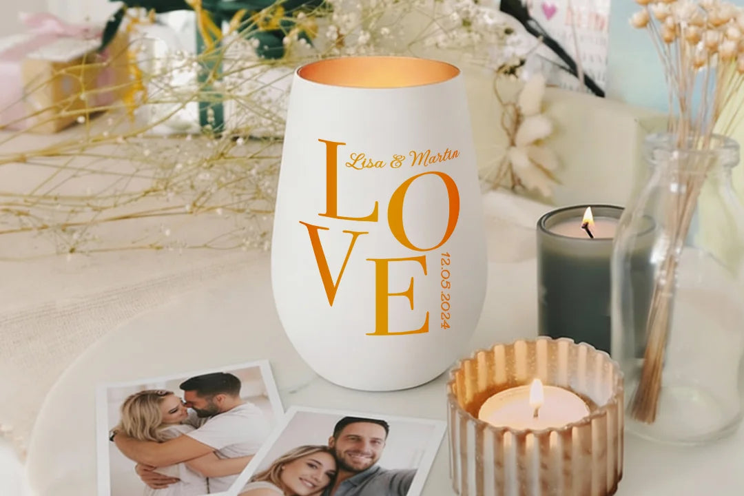Graviertes LOVE-Windlicht