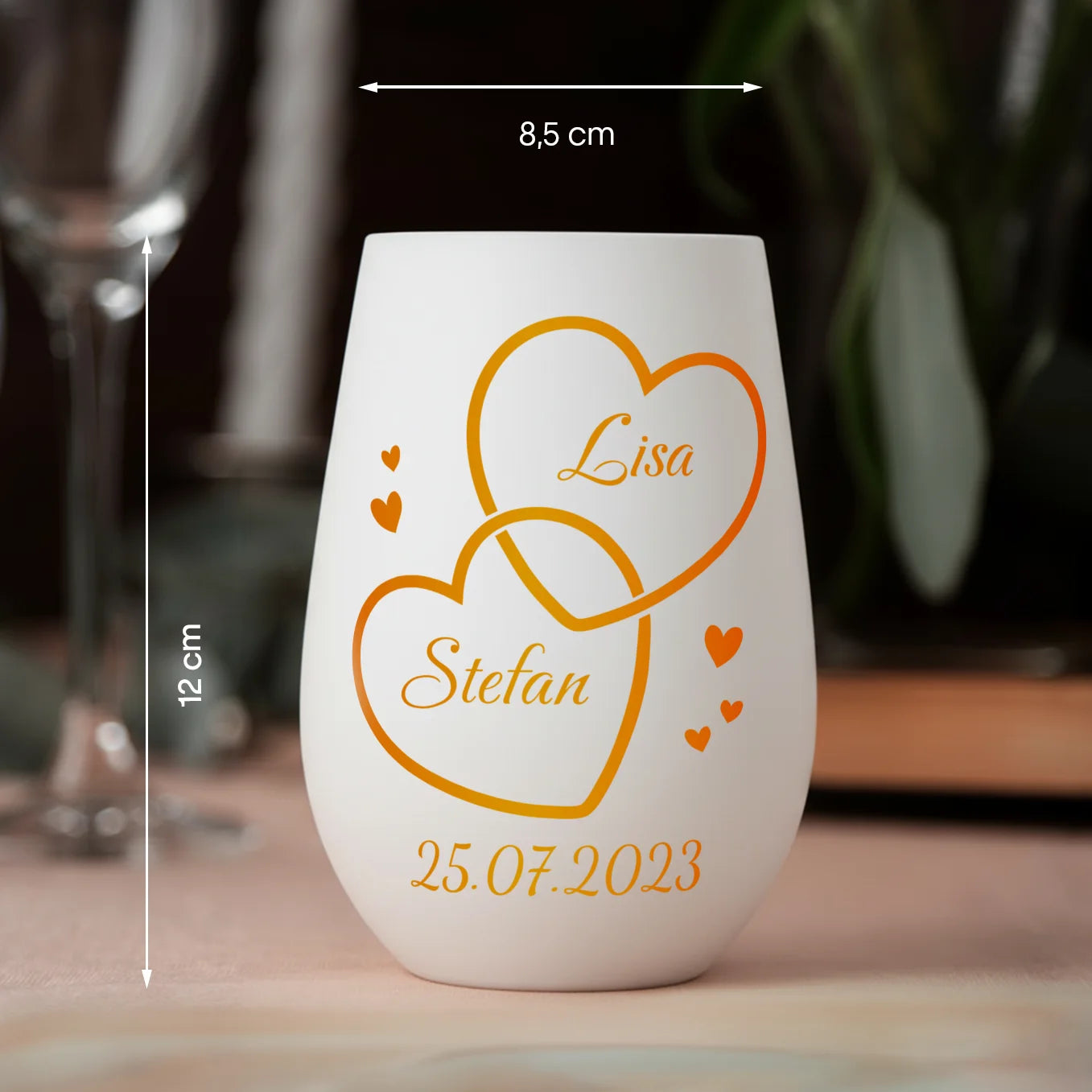 +Es misst ca. 12 cm in der Höhe und 8,5 cm im Durchmesser – perfekt für Teelichter oder kleine Kerzen.