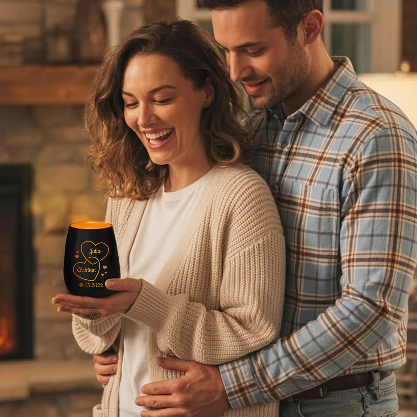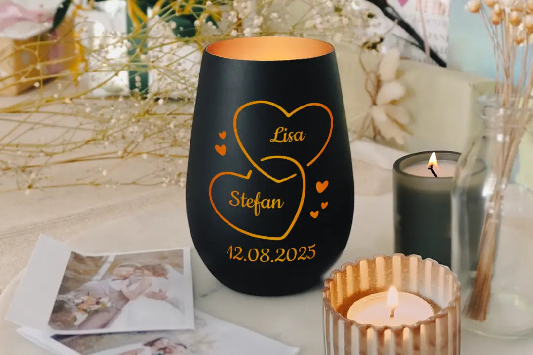 Personalisiertes Windlicht mit Herzen