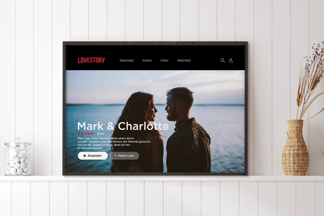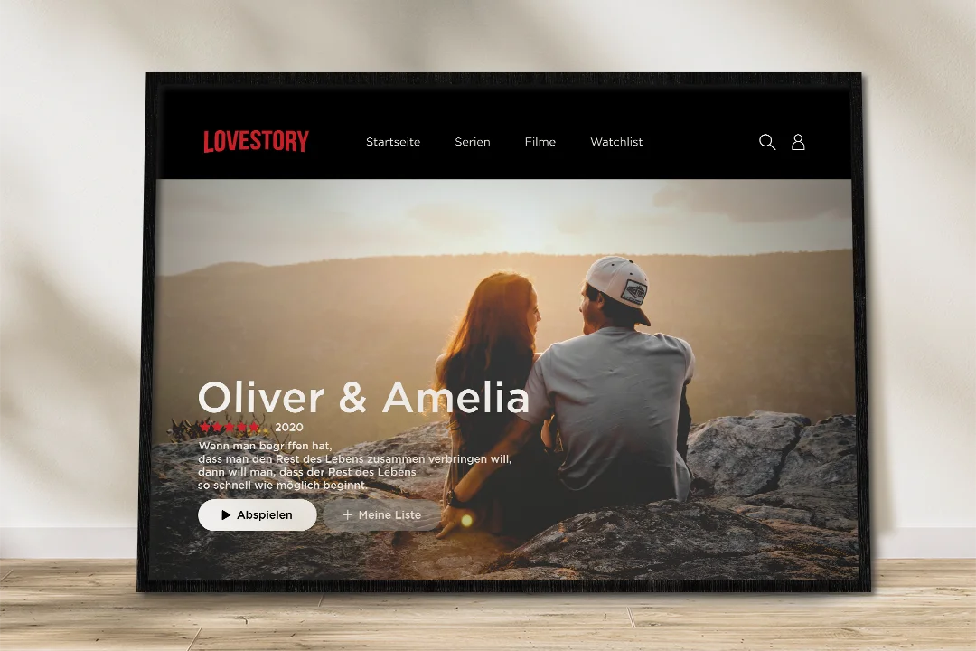 Erwecke eure Liebesgeschichte mit diesem personalisierten Poster im Film-Design zum Leben. Perfekt, um eure besonderen Momente stilvoll festzuhalten und zu zeigen, wie einzigartig eure Liebe ist.