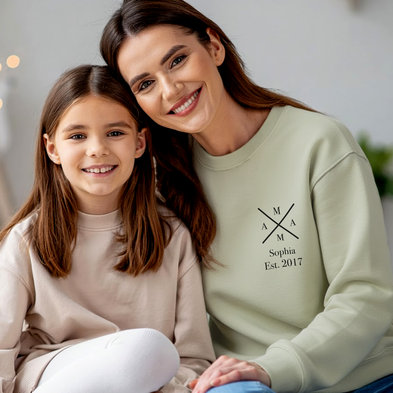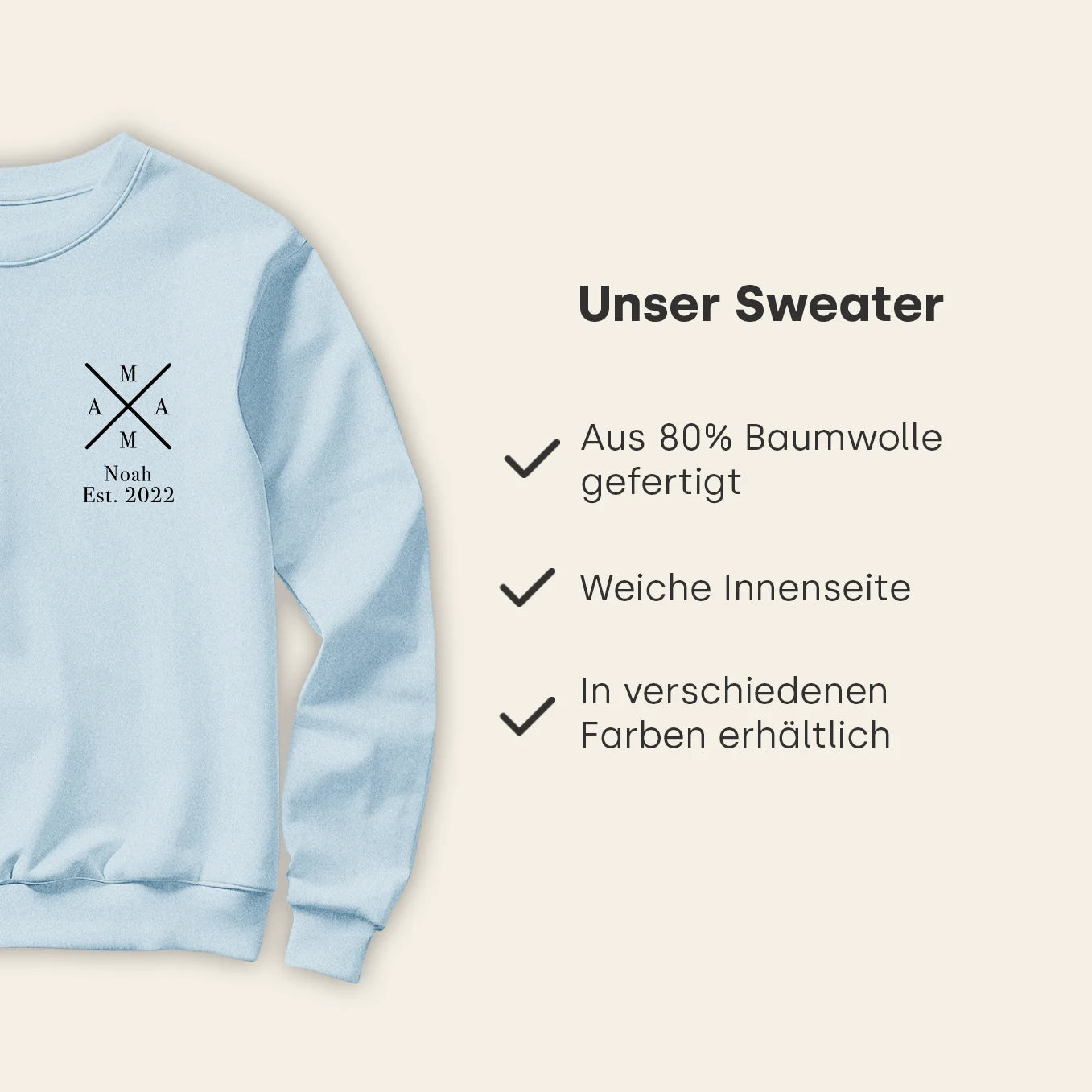 +Selbstverständlich, der Sweater kann für Mütter mit einem oder mehreren Kindern personalisiert werden. Trage einfach die Namen und entsprechenden Geburtsjahre ein.
